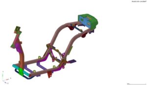 - Vehicle Chassis – FEA analysis for passenger load, road loading (humps and potholes), kerb strike, acceleration and breaking loading, grab handle and foot rest forces and modal analysis.
